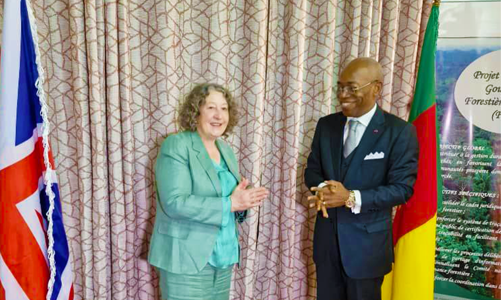The Minister of Forestry and Wildlife, Jules Doret Ndongo, today received in audience the United Kingdom’s Special Representative for Nature, Her Excellency Ruth Davis, for high-level discussions on strengthening bilateral cooperation in the forestry and wildlife sub sectors, notably forest governance, biodiversity conservation, climate action and sustainable development. Great Britain, a long-standing partner of Cameroon is noted for her support for government policy especially its significant contribution made in the implementation of the multi-partner Forest and Environment Sector Programme (FESP) in the 2000s.
