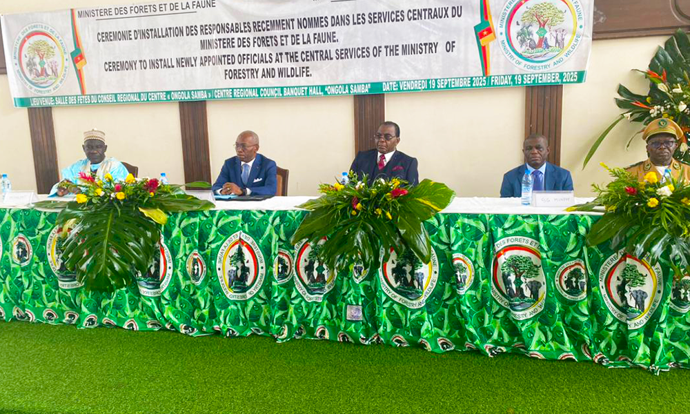 The Minister of Forestry and Wildlife, Mr. Jules Doret NDONGO, installed new officials at the central services of his ministerial department on Friday, September 19, 2025, in Yaoundé at the Ongola Samba Banquet Hall.